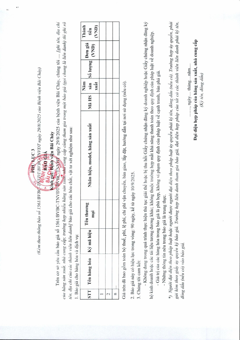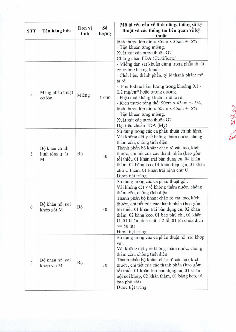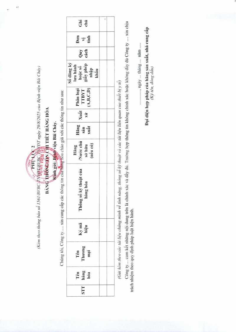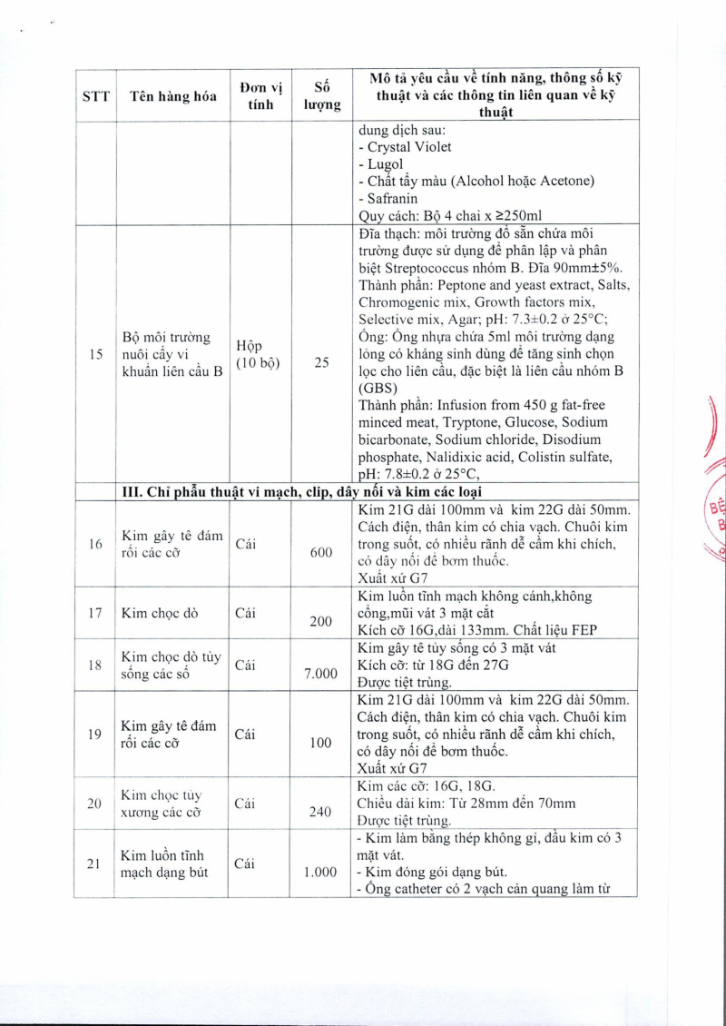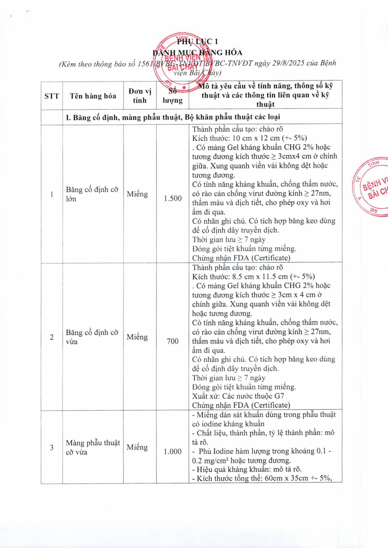 Thông báo số 1561 về nhu cầu mua sắm vật tư y tế phục vụ công tác chuyên môn