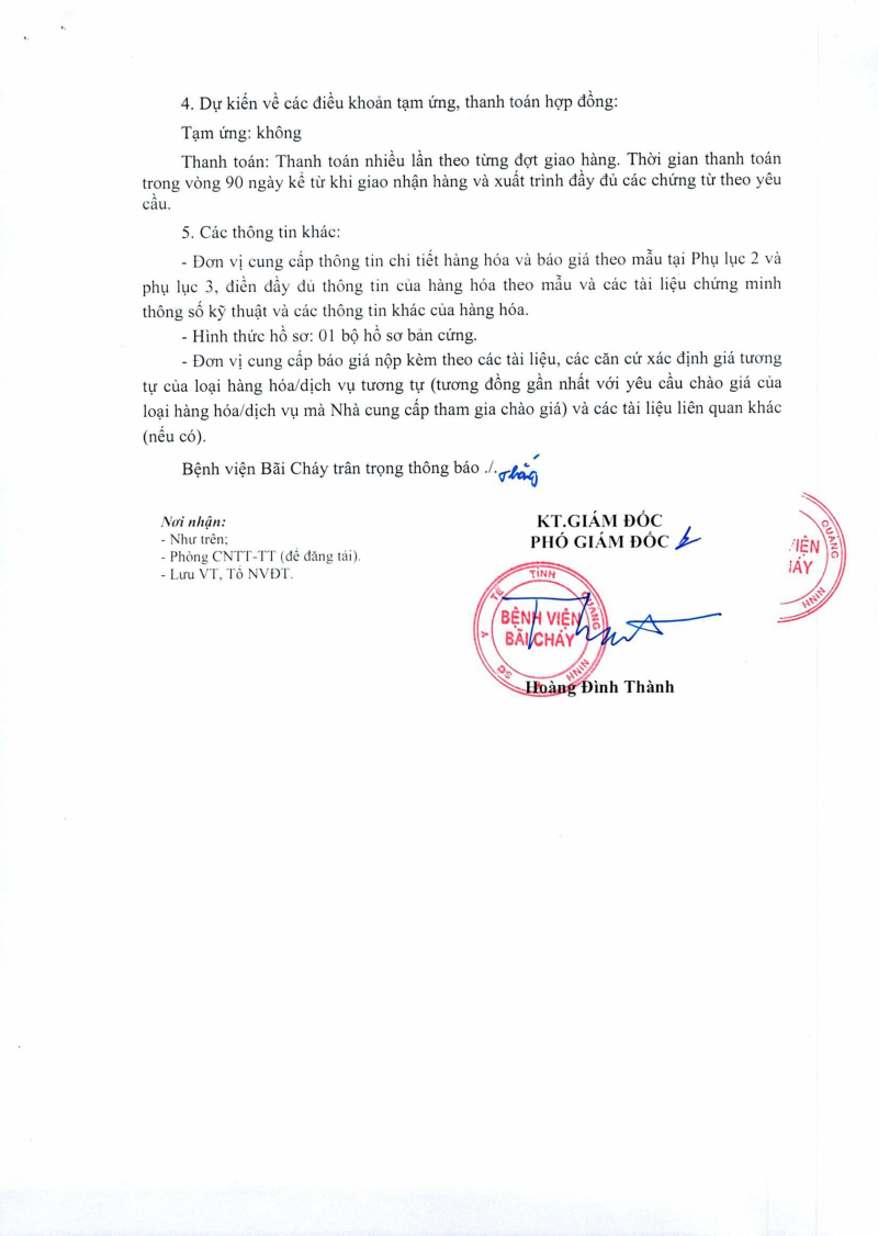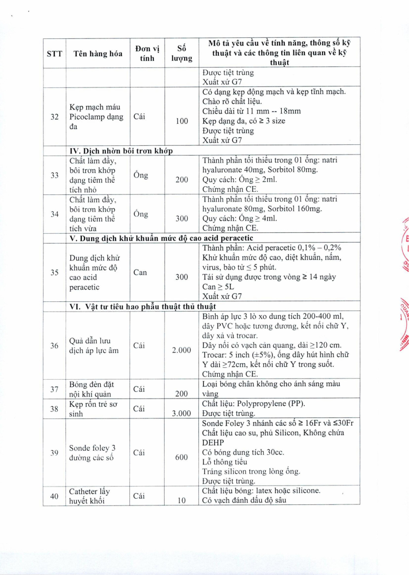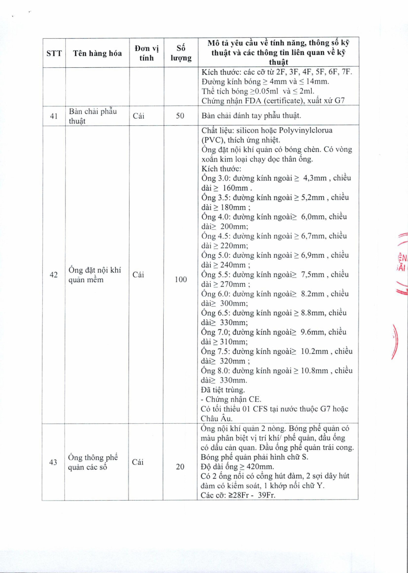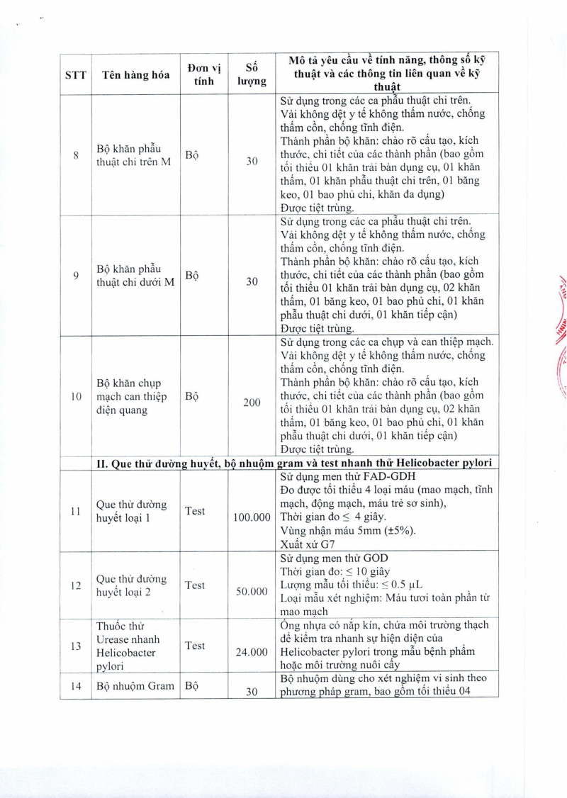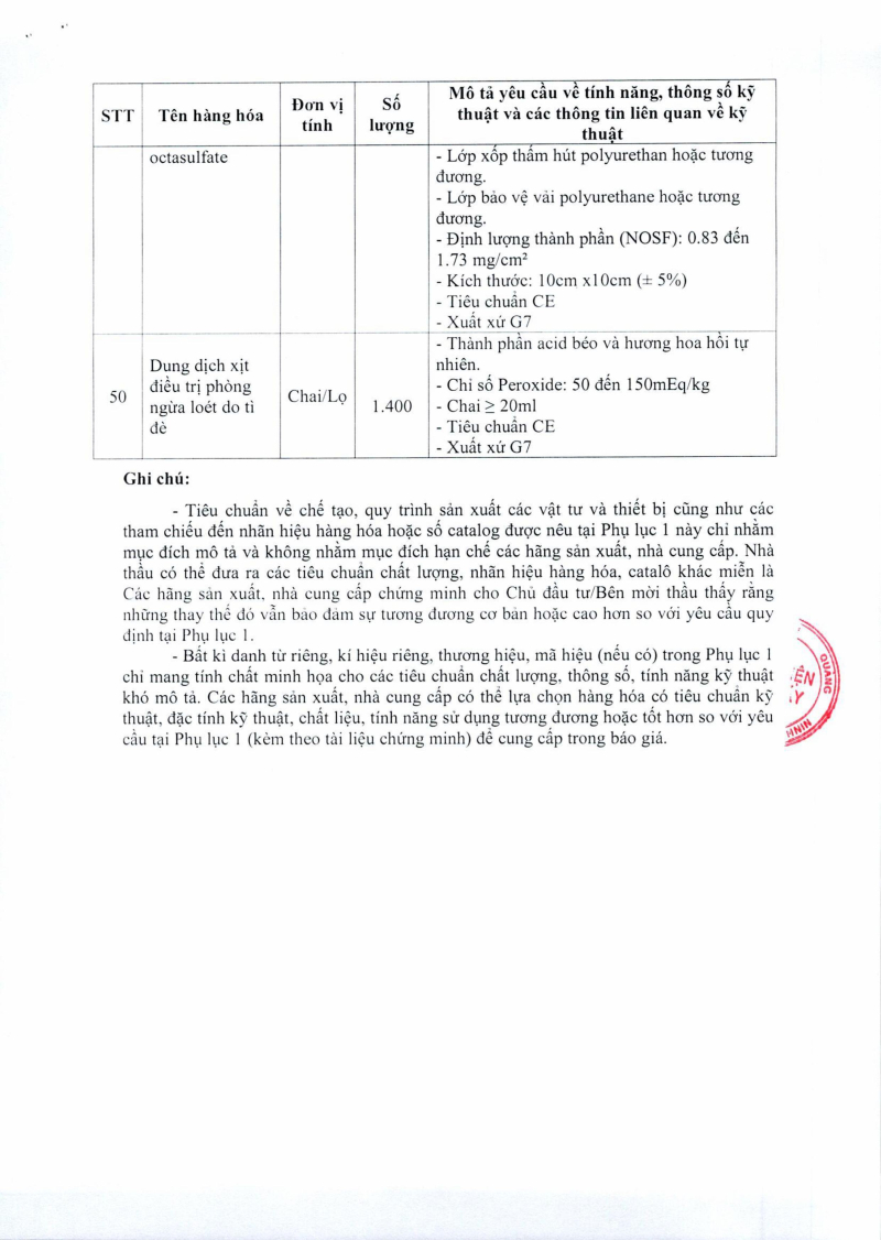 Thông báo số 1561 về nhu cầu mua sắm vật tư y tế phục vụ công tác chuyên môn