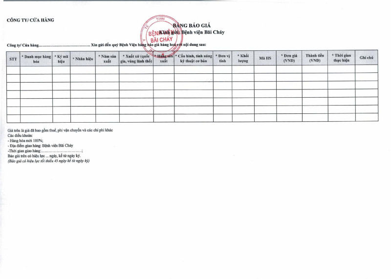 Thông báo số 1575 về nhu cầu mua sắm vật tư tiêu hao