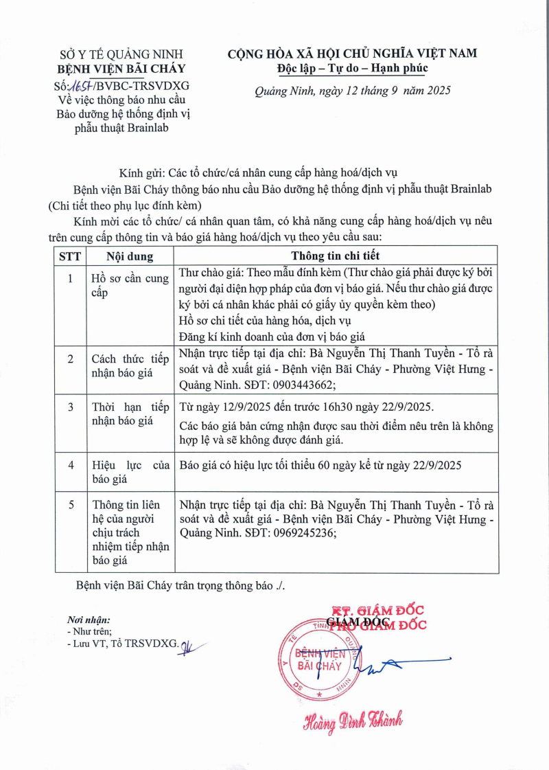 Thông báo số 744 về nhu cầu sửa chữa và thay thế linh kiện cho máy tiệt trùng nhiệt độ cao