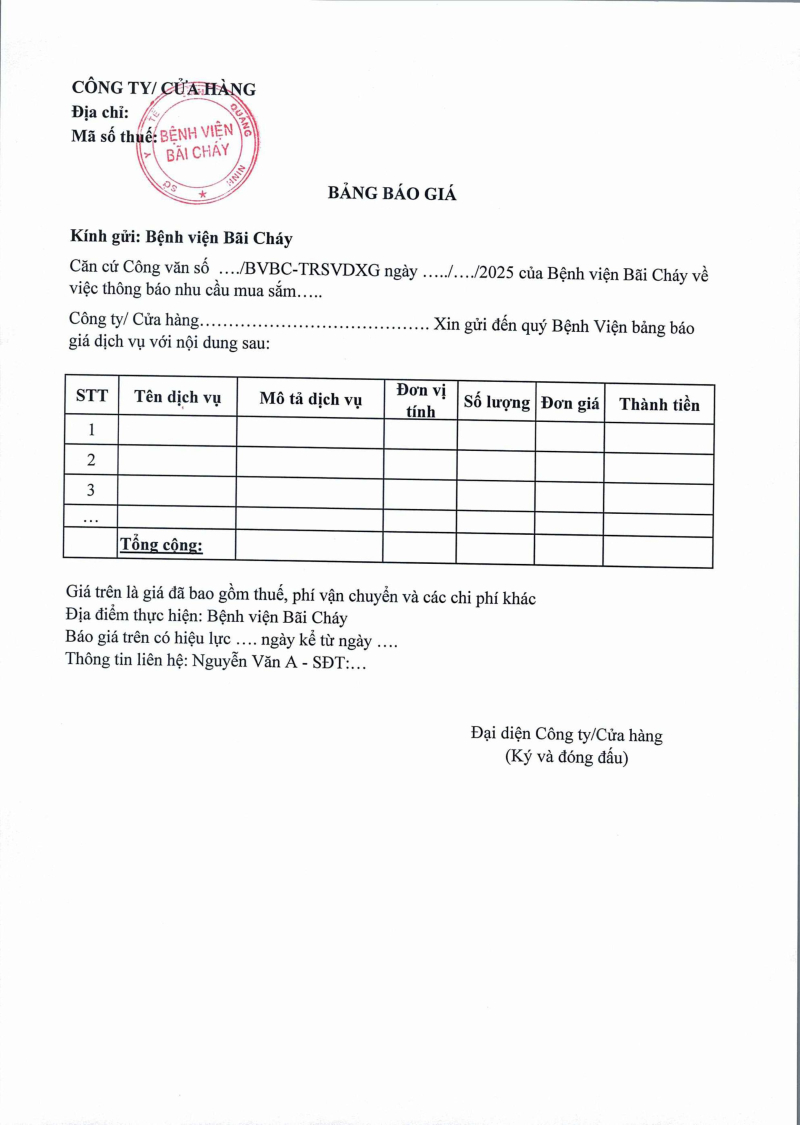 Thông báo số 712 về nhu cầu mua sắm thùng rác phục vụ công tác phân loại, thu gom, vận chuyển rác thải y tế năm 2026