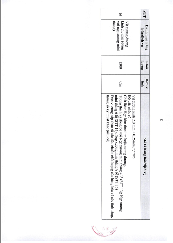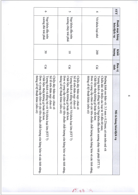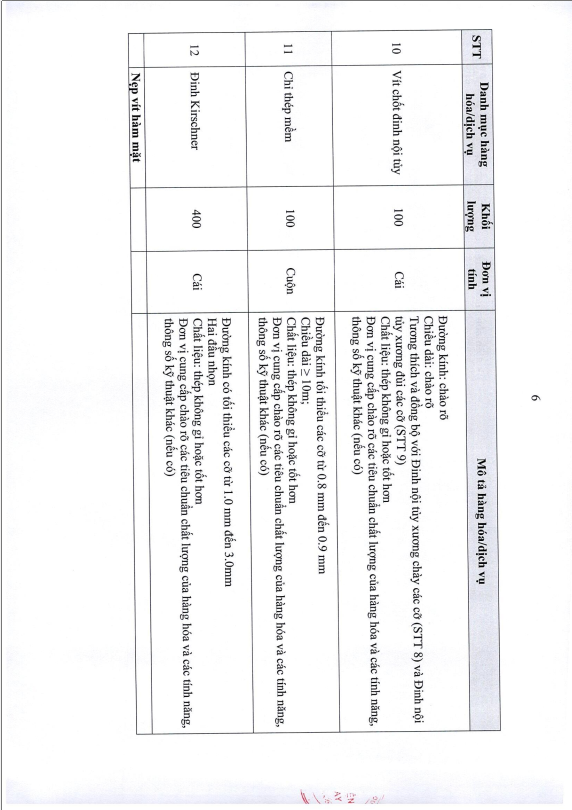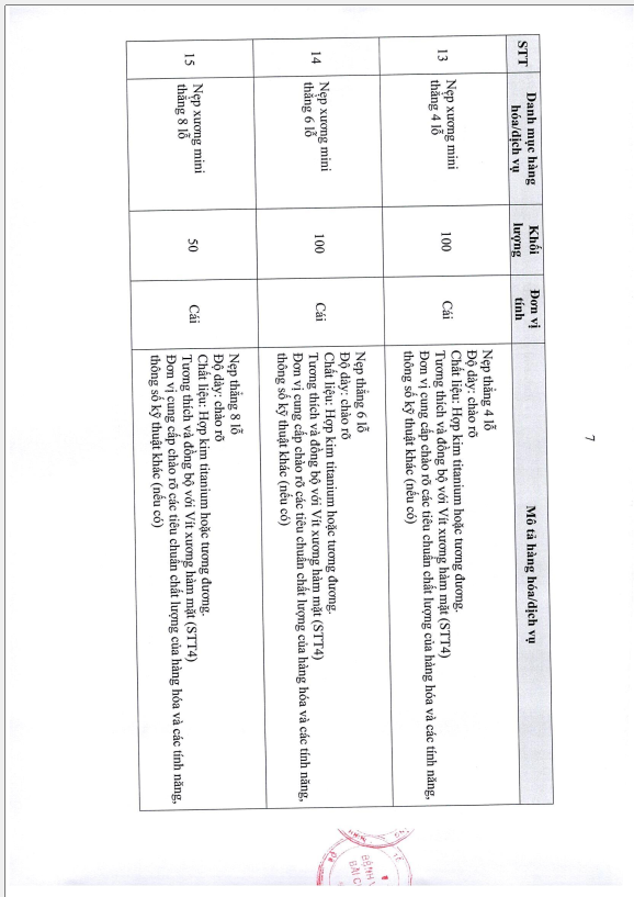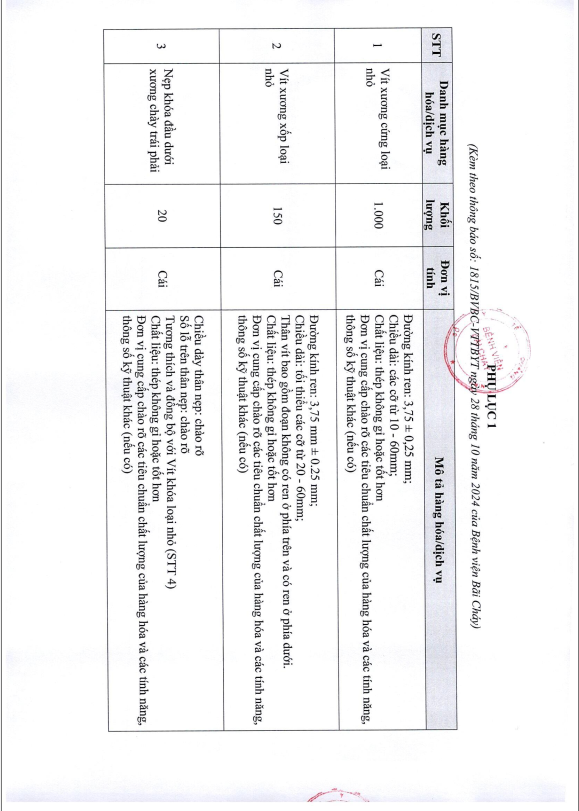 Thông báo số 1815 về nhu cầu mua sắm đinh nẹp vít chấn thương chỉnh hình, răng hàm mặt phục vụ công tác khám chữa bệnh năm 2024 2024/10/28 07:49
