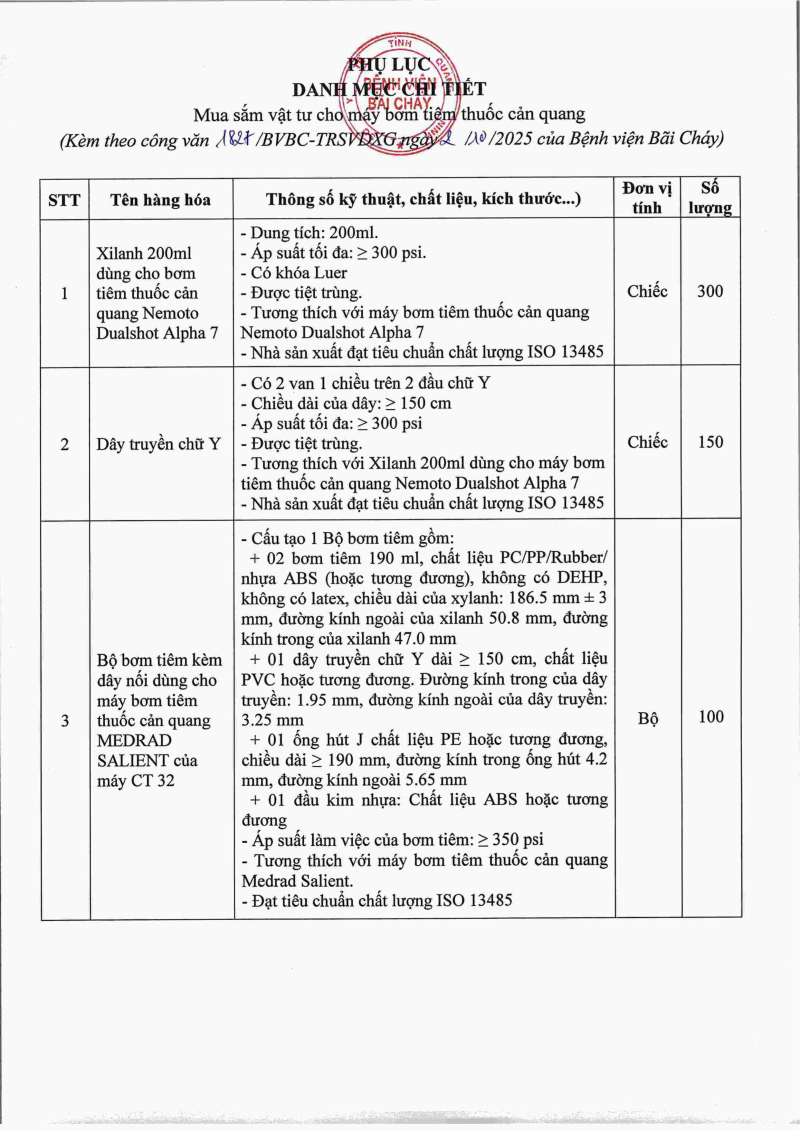 Thông báo số 1827 về nhu cầu mua sắm vật tư cho máy bơm tiêm thuốc cản quang