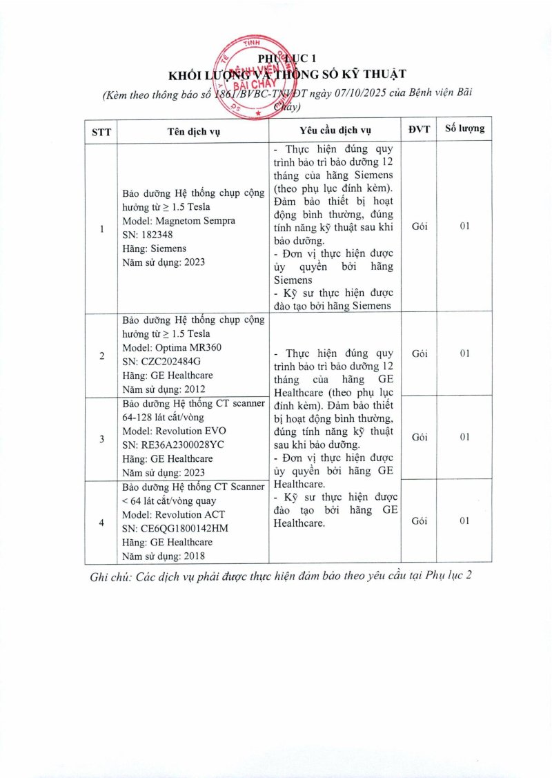 Thông báo số 1861 về nhu cầu bão dưỡng các trang thiết bị chẩn đoán hình ảnh