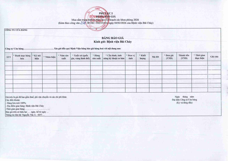 Thông báo số 234 về nhu cầu mua sắm trang thiết bị điện theo kế hoạch các khoa phòng 2026 2026/02/06 01:50
