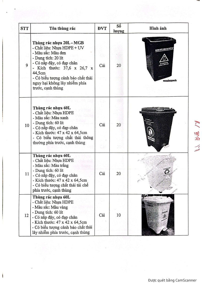 Thông báo số 2340 về nhu cầu báo giá thùng rác phục vụ công tác phân loại, thu gom và vận chuyển chất thải y tế năm 2026 2025/12/04 04:12