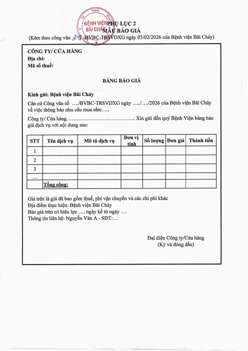 Thông báo số 709 về nhu cầu mua sắm vật tư can thiệp mạch, xquang can thiệp 2026,2027