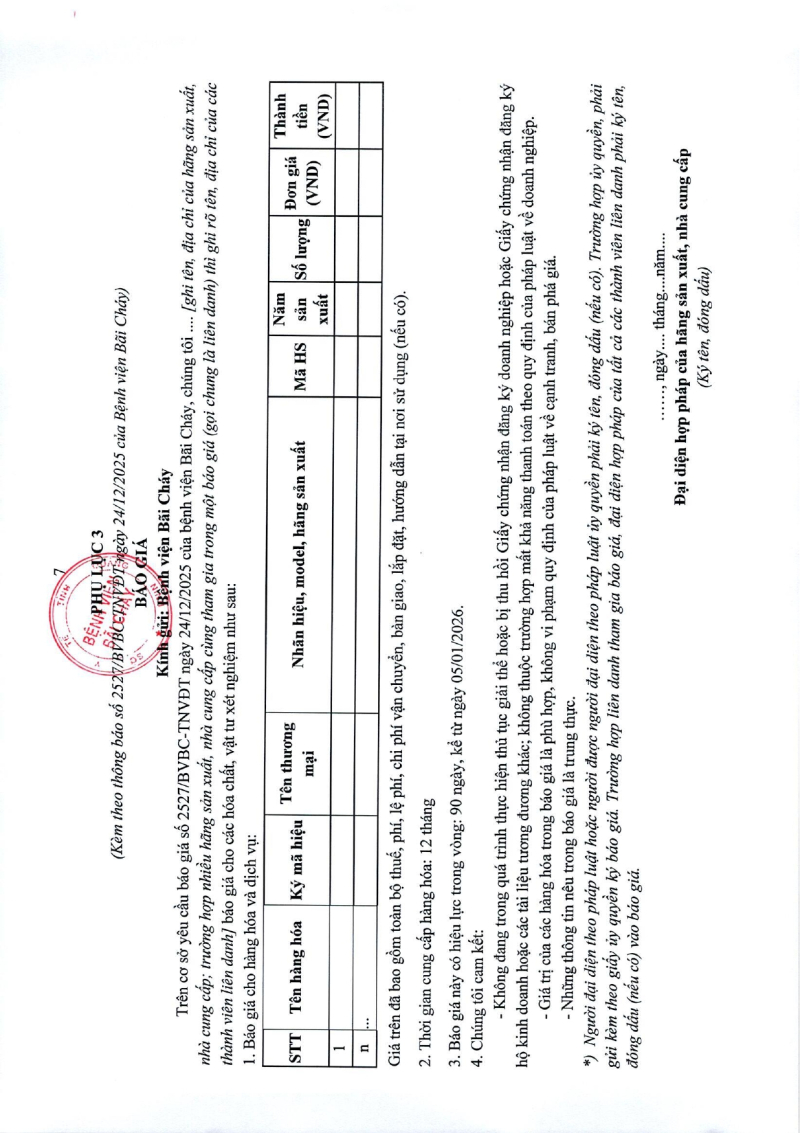 Thông báo số 2527 về nhu cầu mua sắm vật tư y tế can thiệp cho khoa chẩn đoán hình ảnh năm 2026 -2027 2025/12/24 03:27