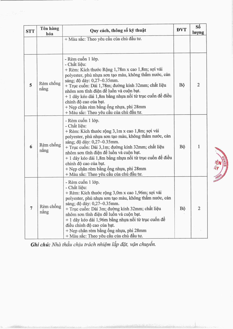 Thông báo số 2540 về nhu cầu mua rèm chống nắng