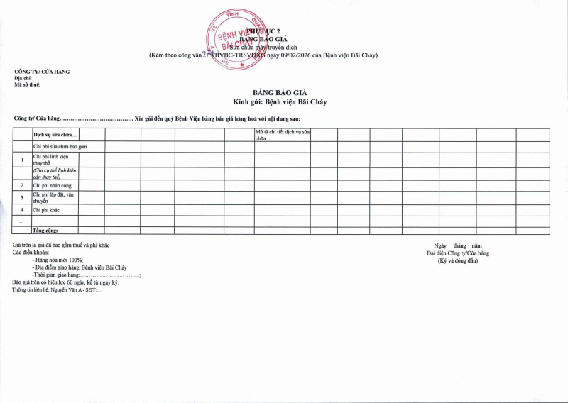 Thông báo số 274 về nhu cầu sửa chữa máy truyền dịch