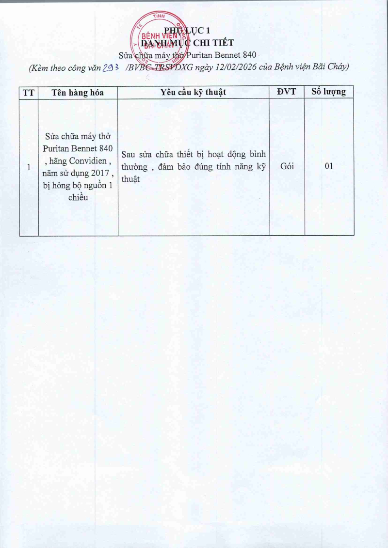 Thông báo số 711 về nhu cầu sửa chữa ô xy cao áp