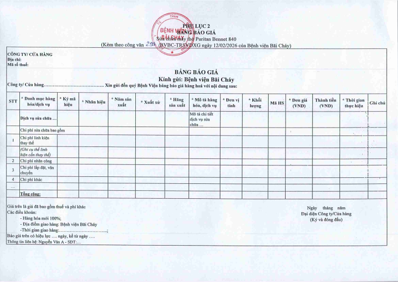 Thông báo số 709 về nhu cầu mua sắm vật tư can thiệp mạch, xquang can thiệp 2026,2027