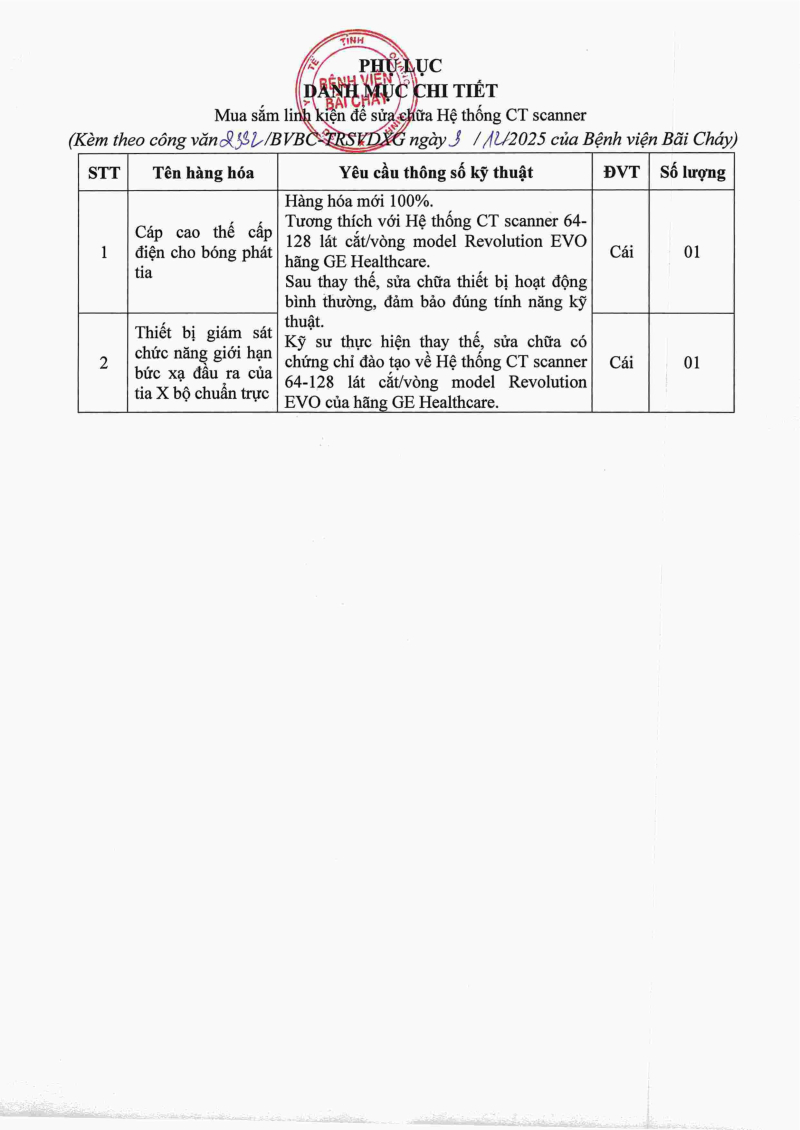 Thông báo số 3332 về nhu cầu mua sắm linh kiện để sửa chữa hệ thống máy CT scaner