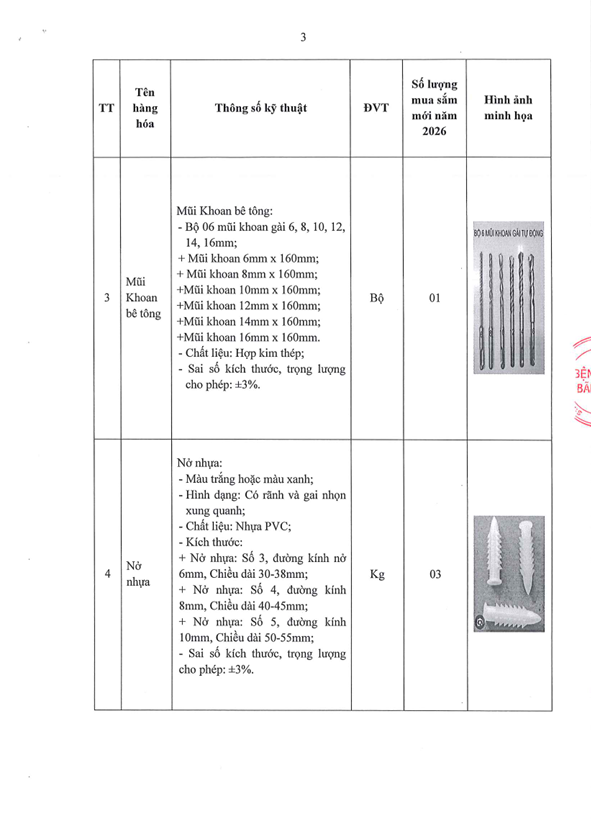 Thông báo số 361 về nhu cầu mua sắm dụng cụ và phụ kiện cửa