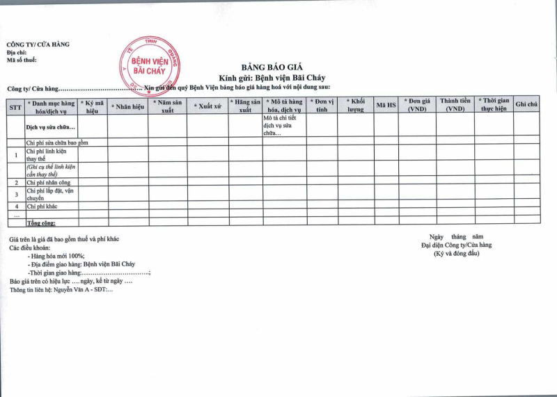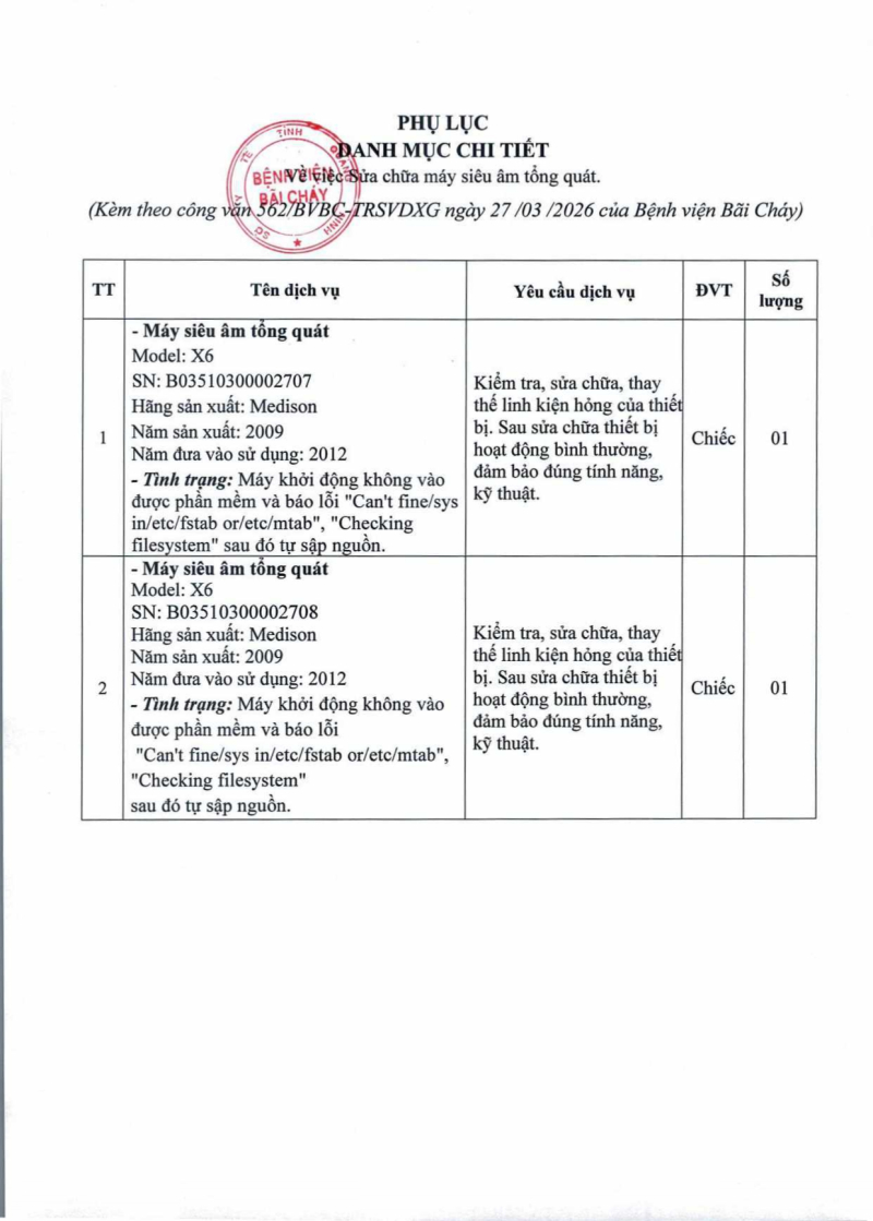 Thông báo số 562 về nhu cầu sửa chữa máy siêu âm tổng quát