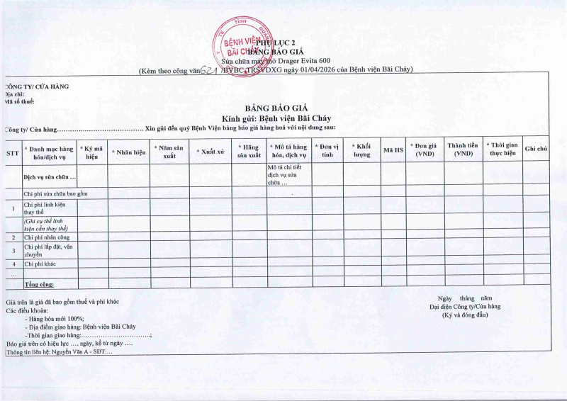 Thông báo số 709 về nhu cầu mua sắm vật tư can thiệp mạch, xquang can thiệp 2026,2027