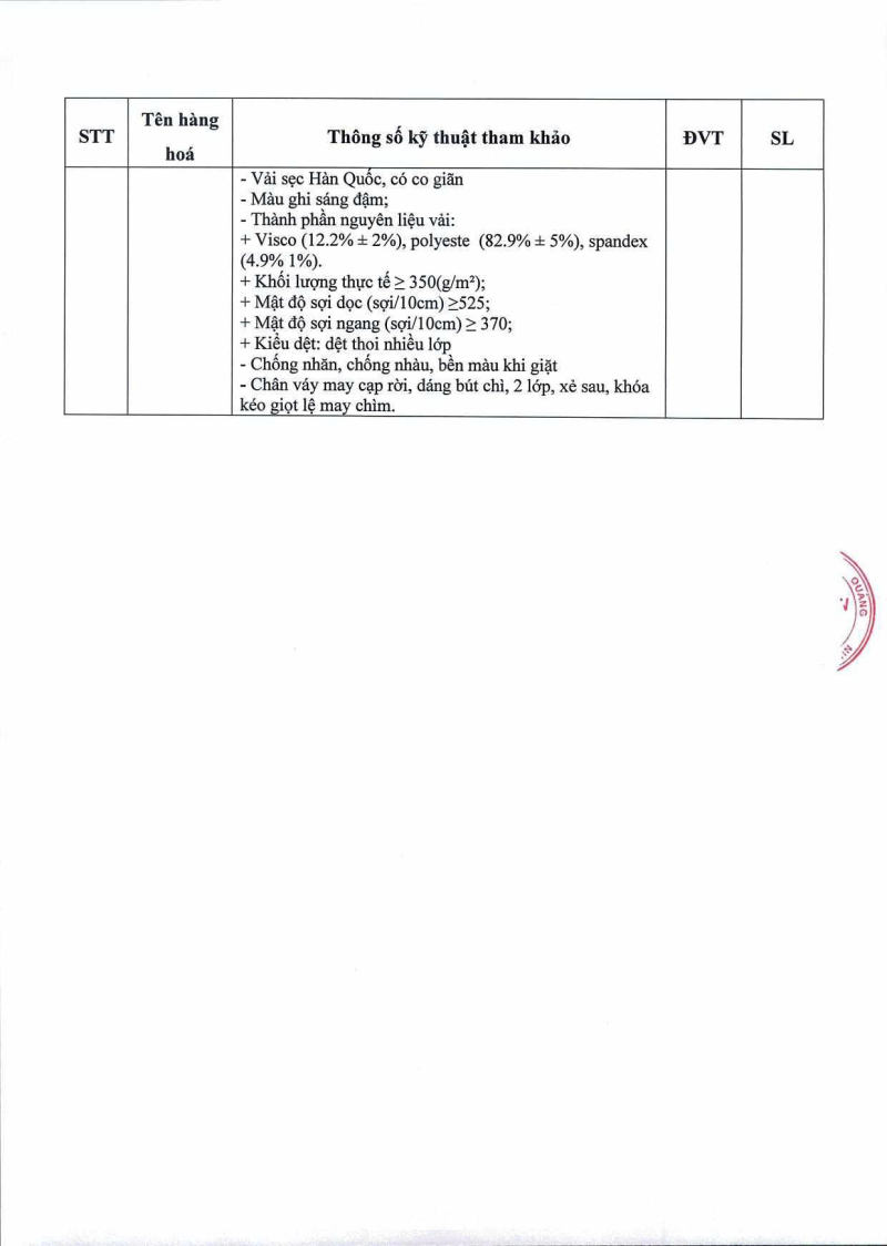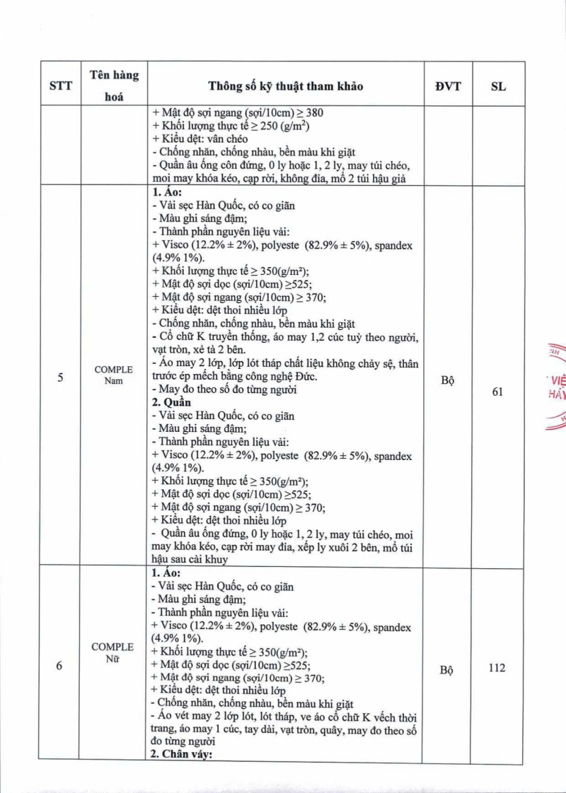 Thông báo số 644 về nhu cầu mua sắm trang phục nhân viên khối văn phòng năm 2026