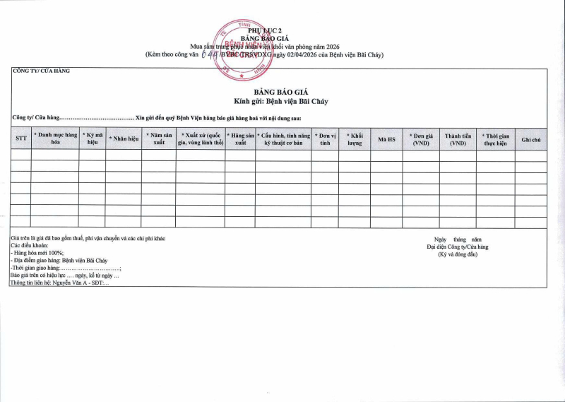 Thông báo số 709 về nhu cầu mua sắm vật tư can thiệp mạch, xquang can thiệp 2026,2027
