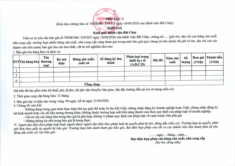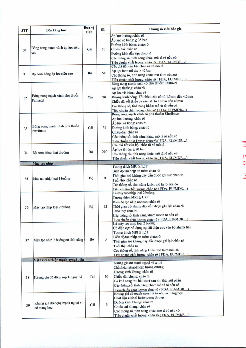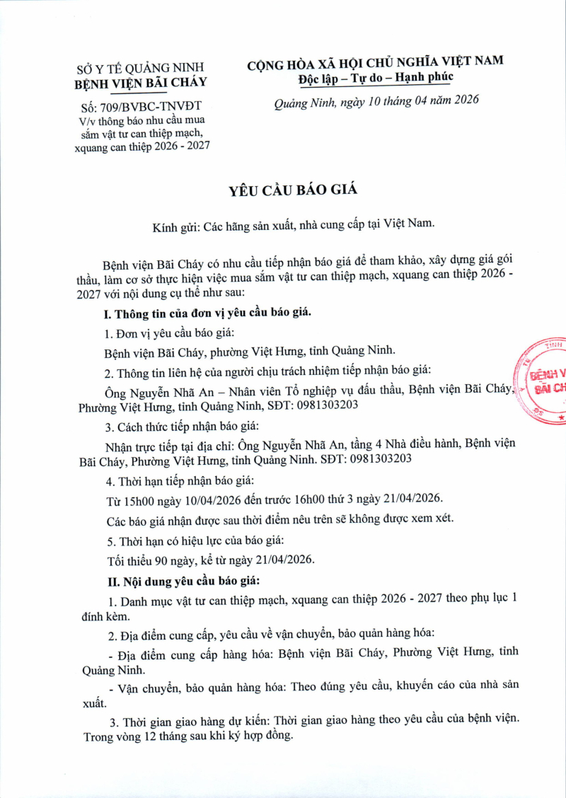 Thông báo số 709 về nhu cầu mua sắm vật tư can thiệp mạch, xquang can thiệp 2026,2027 2026/04/10 13:52