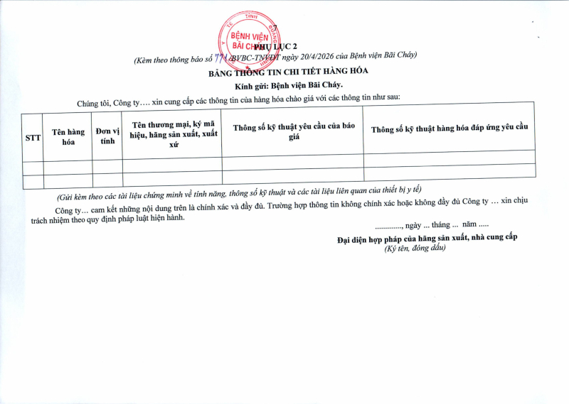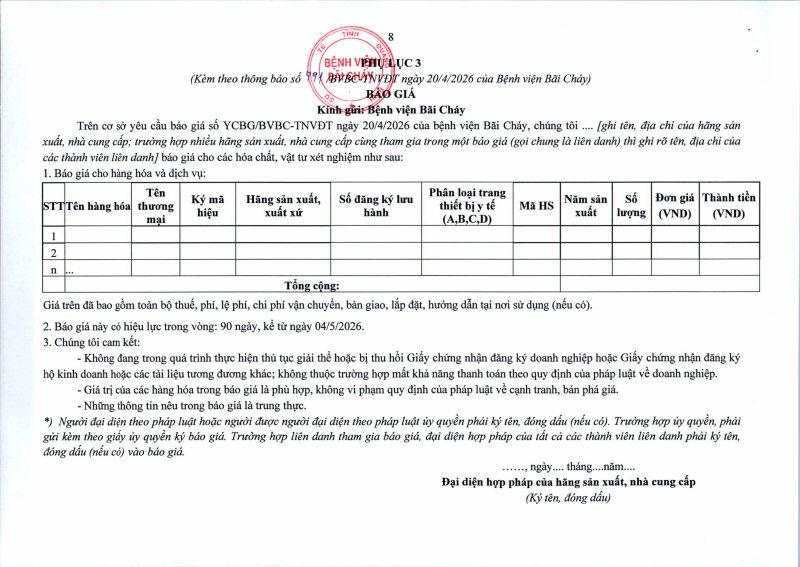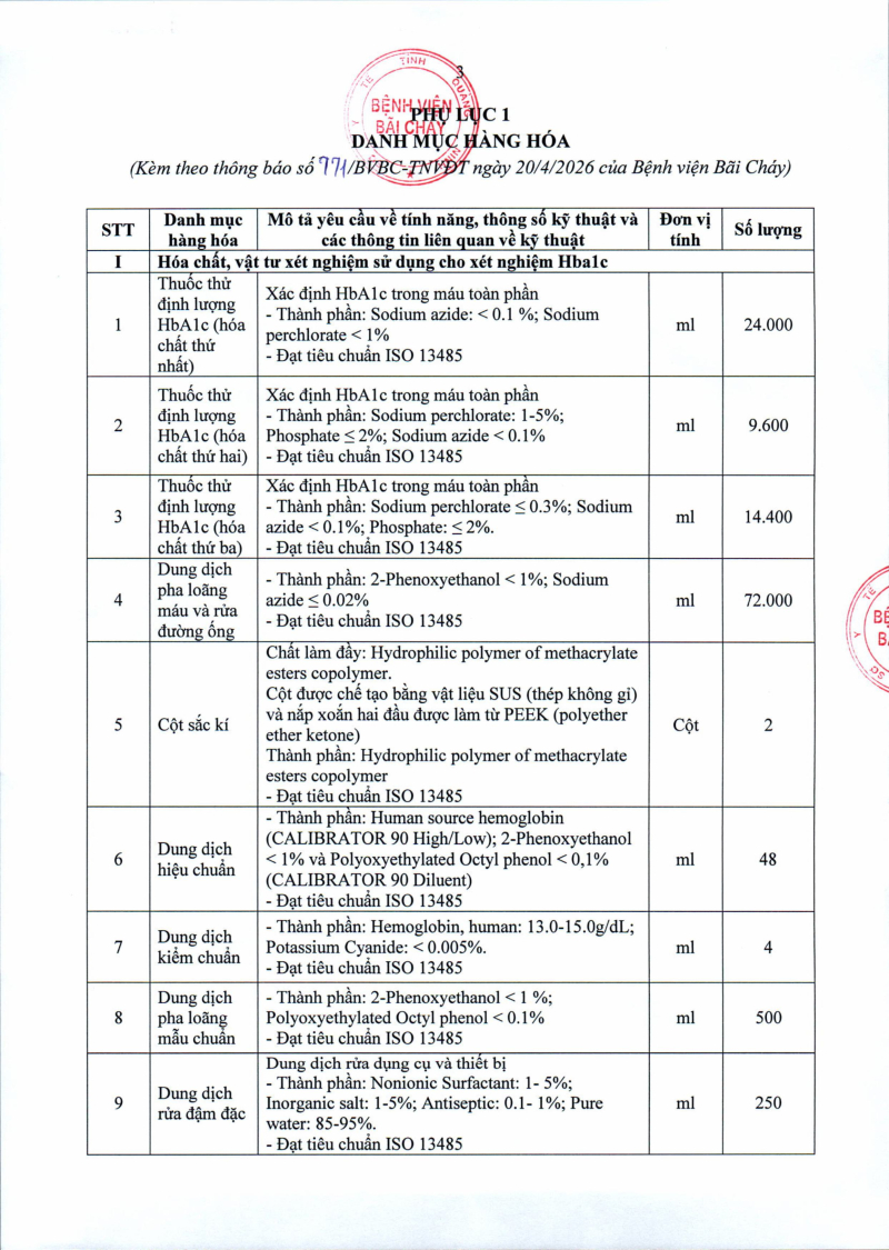 Thông báo số 771 về nhu cầu mua sắm hóa chất, vật tư xét nghiệm phục vụ công tác chuyên môn năm 2026 – 2027 (Đợt 3) 2026/04/20 07:02